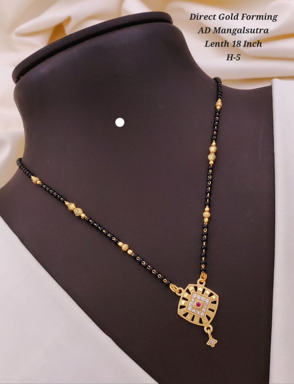 Embrace tradition with a touch of modern elegance with this Forming AD Diamond High Gold Plated 3-Line Mangalsutra. Designed to symbolize love and commitment, this exquisite piece features three delicate black bead chains, complemented by a beautifully crafted American Diamond (AD) studded pendant, all finished with high gold plating for a luxurious look.